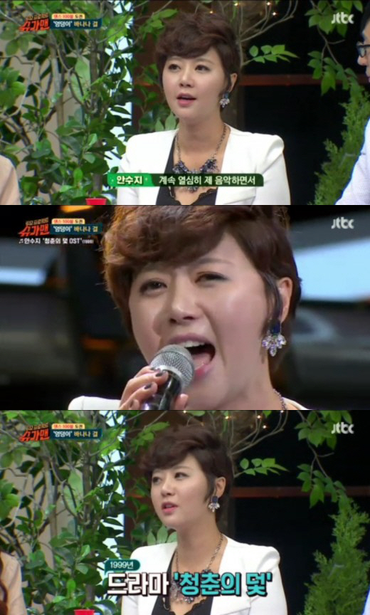 놀라움은 여기서 그치지 않았다. 1999년 방송된 인기 드라마 '청춘의 덫'의 OST의 가수 또한 그녀였던 것. 이날 안수지는 '청춘의 덫'의 OST를 열창하며 모든 사람을 추억에 빠뜨리기도 했다.