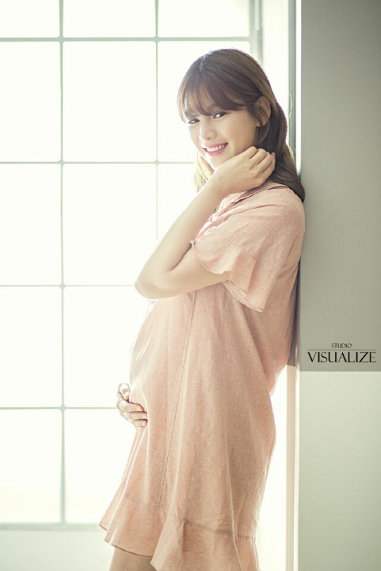 공개된 사진 속 정가은은 아름다운 D라인의 만삭의 배를 사랑스럽게 감싸며 미소를 짓는 모습으로 행복한 분위기를 물씬 풍겼다.