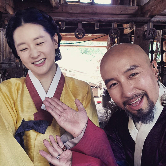 사진에는 한복을 곱게 차려입고 단아한 자태를 드러낸 이영애와 턱수염을 달고 화려한 장신구를 착용한 홍석천의 모습이 담겨 있다. 홍석천의 장난에 환한 웃음을 띠고 있는 이영애의 모습이 눈길을 끈다.