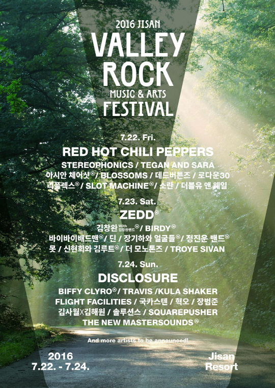 [스포츠조선 고재완 기자] '2016 지산 밸리록 뮤직앤드아츠 페스티벌(이하 밸리록)'이 오는 7월 22일에서 24일까지 경기도 지산 리조트에서 열리며 화려한 라인업을 공개했다.