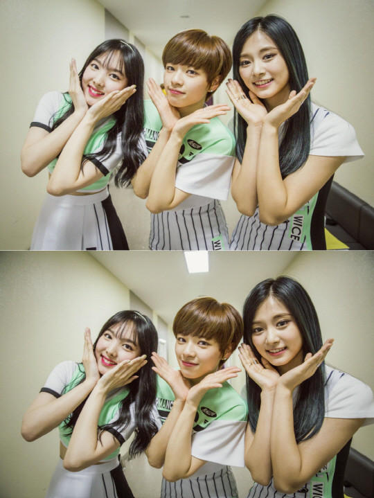 KBS 2TV '개그콘서트' 측은 공식 페이스북에 트와이스의 비하인드 컷을 공개했다. 공개된 사진은 코너 '가족 같은'에 깜짝 출연한 것으로 알려진 트와이스의 멤버 나연, 정연, 쯔위의 비타민 같은 꽃받침 포즈를 담아냈다.