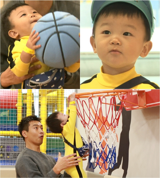 하지만 대박은 자신의 손으로는 절대로 닿을 수 없는 골대 높이에 아빠 옆으로 다가가 얼굴보다 큰 농구공을 요리조리 움직이며 이동국에게 도움을 요청해 웃음을 터트렸다.