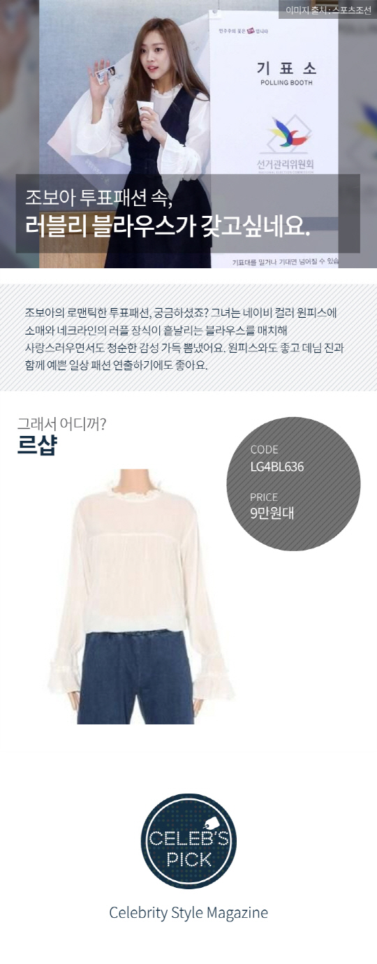 #어디꺼 #스포츠조선 #조보아 #블라우스 #이토록로맨틱한투표패션을봤나 #천막도커튼처럼 #르샵