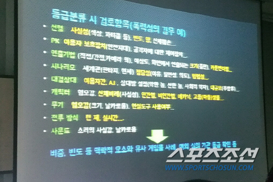 게임의 등급은 매출과 직결되는 사항이기에 원하는 등급을 받기 위한 재신청 과정도 많이 발생한다. 하지만 게임의 기본적인 골격이나 장르들이 잡혀버렸다면 되돌리기 힘든 경우도 비일비재하며 등급을 받은 직후 신고 없이 내용수정(패치)을 통해서 게임을 바꾸는 경우도 있어 등급에 대해 유의해 줄 것을 당부했다.