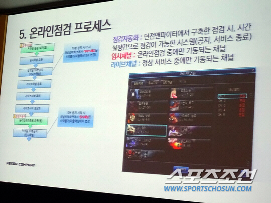 때문에 이런 단점을 없애기 위해 온라인점검이라는 새로운 개념이 등장했다. 게임을 즐기는 와중에 패치가 진행되는 것이 온라인점검이다. 일반 사용자를 임시로 개설한 채널로 이동시켜 점검을 진행하는 온라인점검은 모든 리스크를 최소화 할 수 있는 장점이 있다고 권준택 PM은 설명했다.