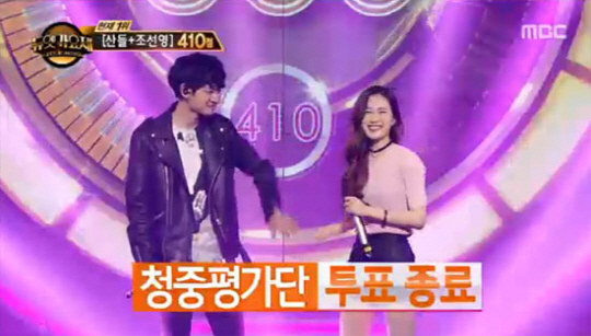 산들은 파트너 조선영과 처진달팽이의 '말하는 대로'를 불렀다. 조선영은 자신의 이야기를 하듯 가사 하나하나에 힘을 실었다. 그러면서도 파워풀한 가창력으로 산들과 호흡을 맞춘 조선영의 무대는 감동을 자아내기에 충분했다. 이에 무대 마지막 410점으로 대반전을 이뤘다.