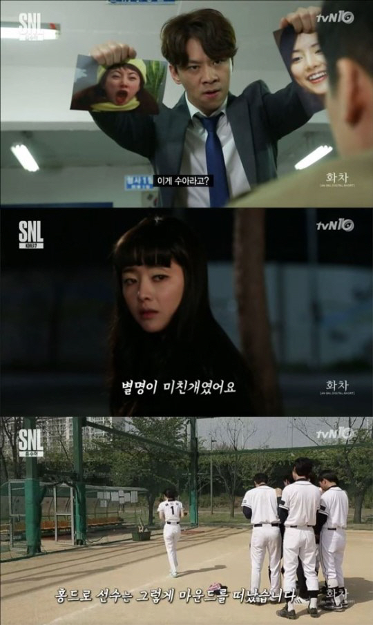 홍수아는 30일 tvN 'SNL코리아 시즌7'의 '화차' 코너에 등장했다. 제작진은 영화 '화차'의 과거를 숨기고 다른 사람으로 위장해 살아가는 여성의 삶을 모티브로, 성형수술 이후 달라진 홍수아의 모습을 담아냈다.