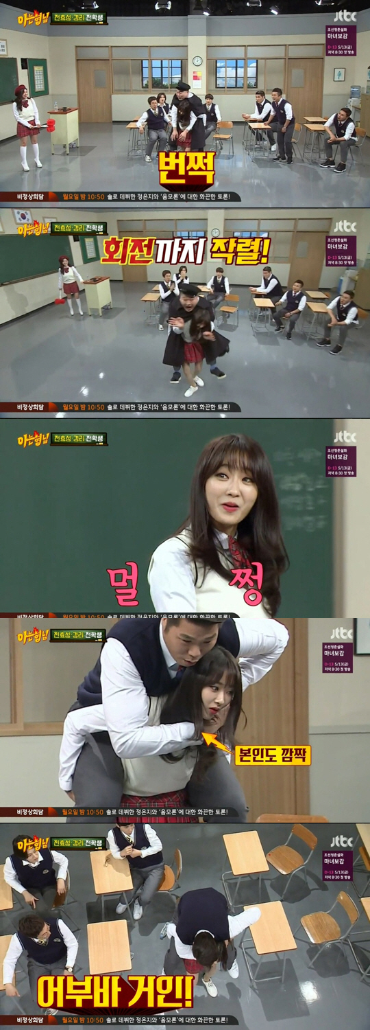 [스포츠조선닷컴 김영록 기자] 나인뮤지스 경리가 걸그룹 천하장사의 면모를 과시했다.