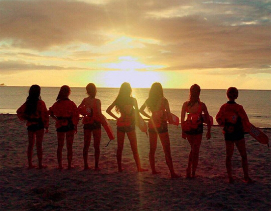 특히 지는 태양을 배경으로 완벽한 뒤태를 뽐내고 있는 AOA 멤버들의 모습에 시선이 집중됐다.