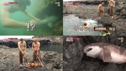 시청자들의 압도적인 지지를 받은 '시간탐험대' 레전드 1위는 바로 '유상무 상어 패대기' 사건이었다. 선사시대로 시간여행을 떠났던 시즌2에서 먹고 살기 위해 물고기 사냥에 나선 유상무는 맨 손으로 상어를 잡고 말았다. 제작진은 물고기 사냥을 위해 작살을 줬지만, 굳이 맨 손으로 상어를 잡아 올린 유상무를 보고 당황스러워했다는 후문. 당시 방송 직후 엄청난 화제를 모았고, 지금까지도 '시간탐험대' 최고의 장면으로 손꼽히고 있다.