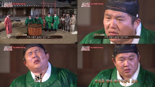 조세호가 진지하게 제작진에게 항의의 의사를 전달하는 짧은 장면이었지만, 이 장면이 2위로 꼽혔다. '조선시대 왕과 내시의 삶'을 살아봤던 시즌2에서 내시를 맡은 조세호는 과거 내시의 인내심 테스트를 위해 시행했다던 '얼음물에 얼굴 담그기'를 했는데, 한겨울에 고문 아닌 고문이 펼쳐지며 조세호가 '버럭'하고 만 것. 외마디 비명을 내지른 조세호는 "이 장면이 그렇게 중요한가요?"라고 제작진에게 물었고, 주변에 있던 제작진은 물론 보조출연자까지 폭소를 터뜨리며 레전드 장면으로 남게 됐다.