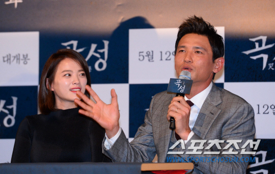 영화 '곡성'(감독 나홍진) 시사회가 3일 오후 서울 건대 롯데시네마에서 열렸다. '곡성'에서 조연 무당 일광 역으로 출연한 황정민은 힘들게 촬영하는 것으로 유명한 나홍진 감독을 평했다.