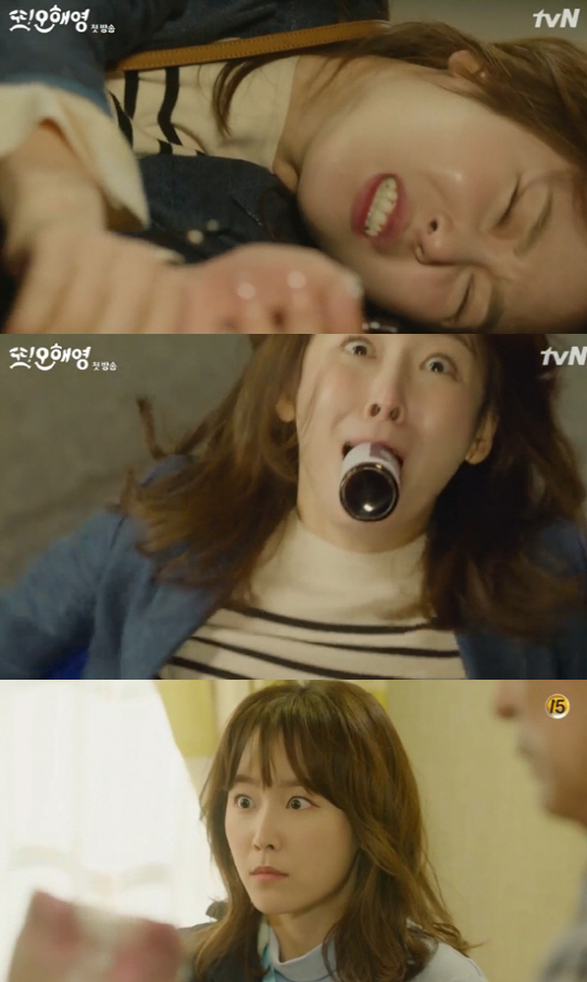 그런 뒤 오해영은 친구와 만났고, 술에 취한 오해영은 음료수를 한번에 마시기 내기를 했다. 결국 오해영은 뒤로 엎어지며 코믹 연기로 불사했다.