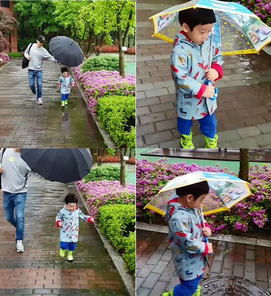 공개된 사진에는 빗속을 뚫고 어린이집에 등교하고 있는 서언이와 서준이의 모습이 담겨있다. 특히 서준이는 우산을 씌워주고 있는 아빠 이휘재가 힘겨워 할 정도로 발랄하게 달리는 반면, 서언이는 무언가 생각에 잠긴 듯한 표정으로 얌전하게 우산을 쓰고 걸어가 눈길을 끈다. 쌍둥이 형제의 극과 극 등굣길이 웃음을 자아낸다.