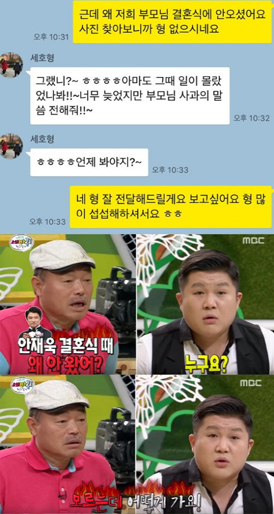 최근 온라인상은 지난 해 7월 방송된 MBC '세바퀴'에서 김흥국은 조세호에게 "왜 안재욱 결혼식에 안 왔냐"며 타박했다. 이에 조세호는 "모르는데 어떻게 가냐"고 말하며 억울한 표정을 지었다.
