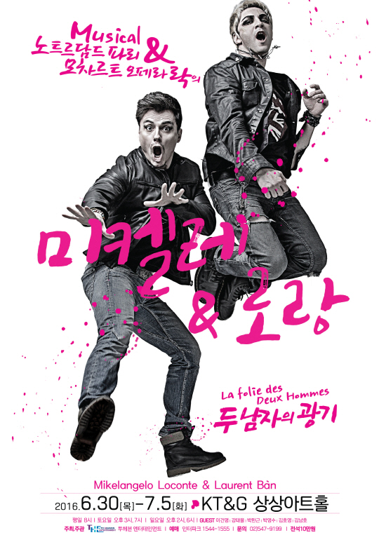 프랑스 뮤지컬 '노트르담 드 파리'와 '모차르트 오페라 락'(국내 공연명 '아마데우스')의 주역인 프랑스 배우 미켈란젤로 로콩테와 로랑 방이 오는 6월 30일부터 7월 5일까지 6일간 삼성역 KT&G 상상아트홀에서 국내 첫 단독 콘서트를 갖는다.