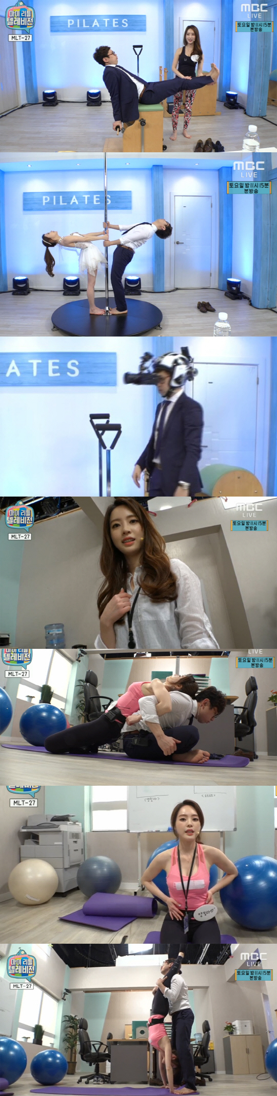 둘은 사무실에서 할 수 있는 간단한 운동부터 폴댄스, 물구나무 서기 등의 고난도의 커플 필라테스를 거침없이 선보였다.