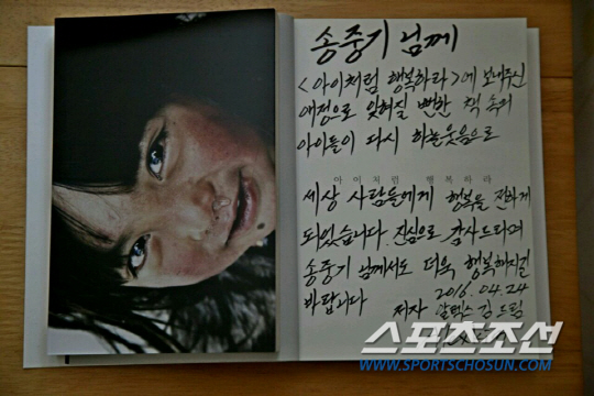 지인들을 수소문한 끝에 송중기와 연락이 닿았다. 소속사 주소로 책을 보내주고 싶다는 저자의 제안에 송중기는 이렇게 답했다. "그건 도리가 아니죠. 직접 얼굴을 뵈어야죠. 작가님, 제가 찾아뵐게요."
