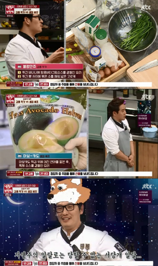 김풍은 튀긴 빵 사이에 볶은 소를 채워 넣은 고로케 '불량만쥬'를 준비했고 샘킴은 아보카도 튀김 위에 데친 연어를 넣어 특제 소스를 곁들인 '아뵤카도'요리를 준비했다.