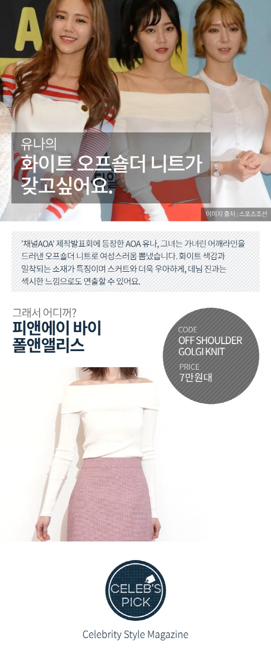 #어디꺼 #스포츠조선 #유나 #AOA #니트 #대세는오프숄더 #오늘나여자여자해 #피엔에이바이폴앤앨리스