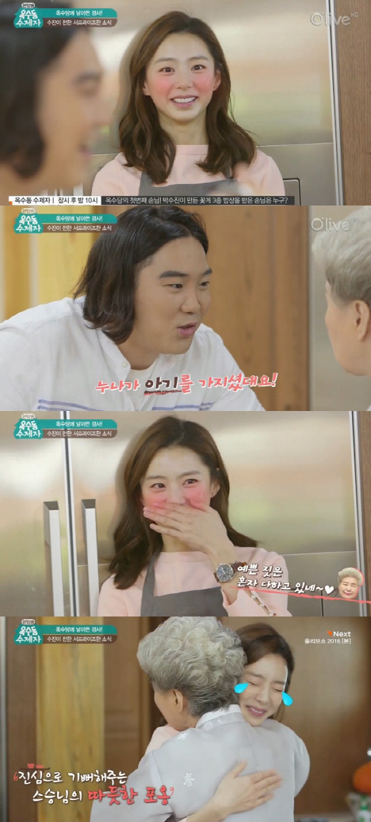 이에 놀란 심영순은 "어머. 예쁜 짓은 혼자 다 하고 있다"고 기뻐했고, 박수진은 수줍은 미소를 지었다. 심영순은 박수진의 임신을 진심으로 기뻐했고, 두 사람은 따뜻한 포옹을 나눴다.