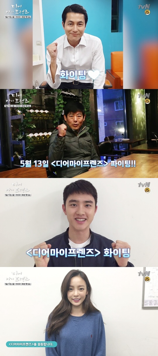 [스포츠조선닷컴 정안지 기자]배우 정우성, 성동일, 남궁민, 진이한, 정일우, 도경수(EXO), 구하라 등이 tvN '디어 마이 프렌즈'를 응원하고 나섰다.