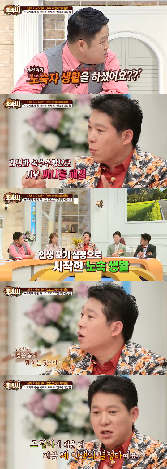 이에 박상철은 "(거리에서 구걸을 하고) 돈 100원짜리 하나 받아서 옥수수빵이랑 라면을 사먹고 다녔다"고 털어놨다.