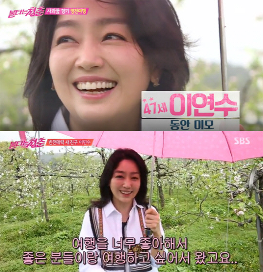 '불타는청춘' 배우 이연수가 여전한 청순미모를 과시했다.