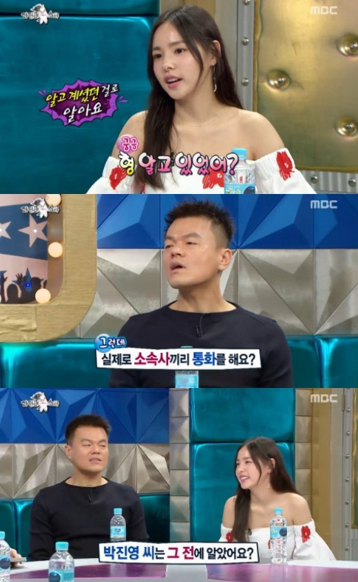 이에 박진영은 "민효린과는 우린 비밀이 없다. 두 사람이 열애를 시작할 때부터 알았다"면서 "열애 기사를 알고 양현석 형에게 전화해서 상의했다. 둘 다 잘 만나고 있다고 인정하자고 했었다"고 당시를 떠올렸다.