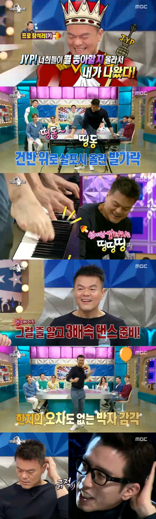 [스포츠조선닷컴 정유나 기자] '라디오스타' 박진영은 예능감까지 장착한 진정한 딴따라였다. 그는 재치 넘치는 입담은 물론 발연주부터 3배속댄스까지 거침없이 선보이며 자신의 매력을 모두 발산했다.