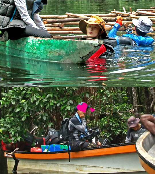 김지민은 '정글의 법칙 in 파푸아뉴기니' 여자특집의 멤버로 생존에 도전한 상황. 김지민은 물에 들어가 일하던 중 자신의 몸에 달린 카메라가 걱정돼 "이거 수중 카메라냐"고 주변에 물었다. 이에 김병만은 "수중카메라가 아닌데 거치 감독이 돈이 많아. 일회용으로 쓰고 있어"라고 장난삼아 대답했다.