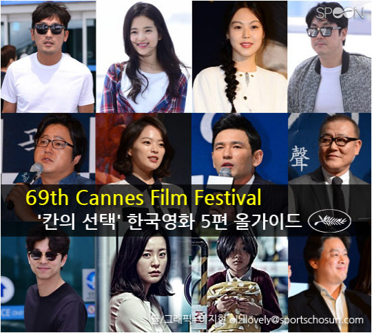 12일(한국시각) 프랑스 남부의 휴양도시 칸에서 제69회 칸국제영화제의 막이 올랐다. 올해는 박찬욱 감독의 영화 '아가씨'를 비롯해 '곡성', '부산행', '1킬로그램', '히키하이커' 무려 다섯 편의 한국 작품이 칸의 선택을 받았다. 김민희 천우희 정유미 하정우 황정민 공유 등 대한민국 영화계를 대표하는 별★들이 칸의 레드카펫을 밟는다. 어느 때보다 뜨거운 관심이 쏠리는 이유다.