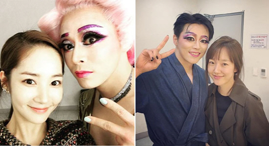 특히 이들이 공개한 인증샷 속 조승우와 조정석은 모두 화려한 '헤드윅' 속 분장을 하고 있어 시선을 모은다. 두 사람은 아름다운 여자분장을 하고 여자보다 더욱 뛰어난 미모를 뽐내 네티즌들의 이목을 사로잡았다.