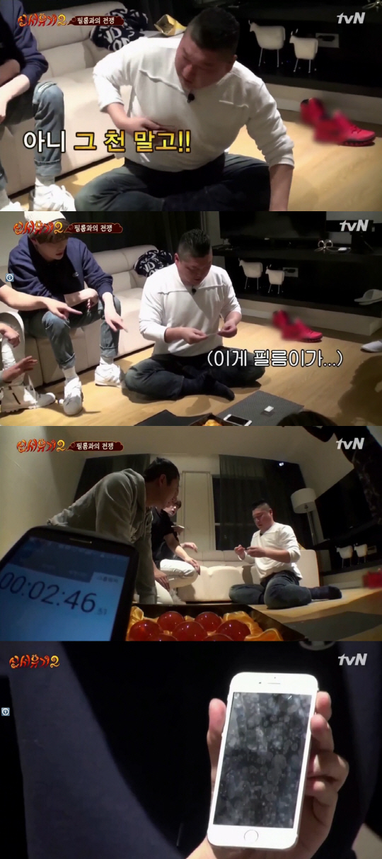 특히 강호동은 3분의 미션 시간이 끝나기도 전에 보호 필름에 잔뜩 먼지가 붙어 결국 미션에 실패했다.
