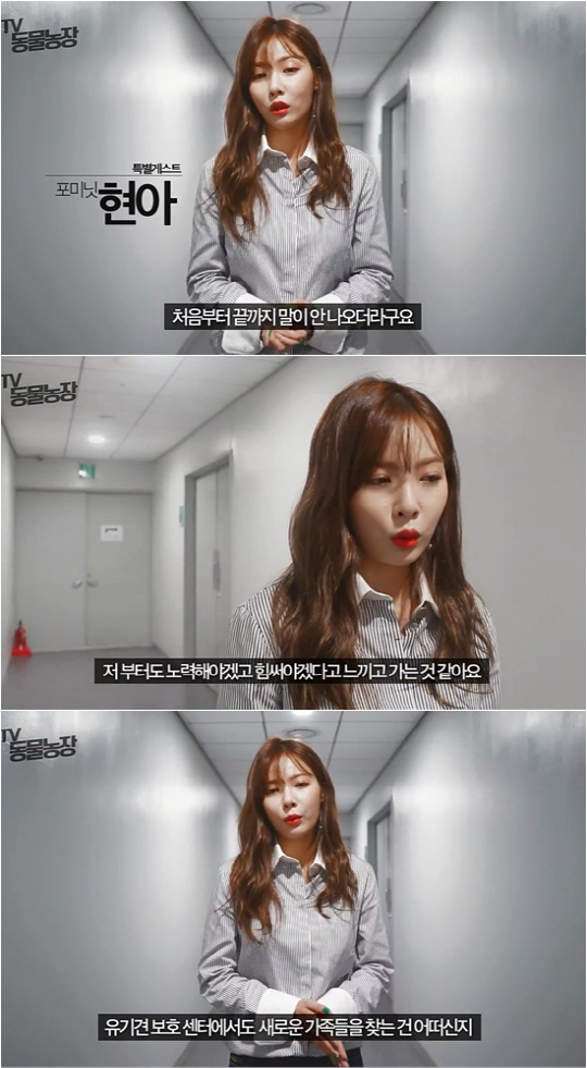 '동물농장' 제작진은 페이스북을 통해서도 녹화 후 현아의 인터뷰를 공개했다. 영상에서 현아는 "처음부터 끝까지 말이 안 나오더라. 화만 낼 수 없었던데 수요가 있기 때문에 공급하는 분들이 계신거니까. 이 사태에 대해 많은 분들이 아셔야 될 것 같다. 저부터 노력하고 힘 써야겠다고 생각했다"라고 소감을 밝혀 눈길을 끌었다.