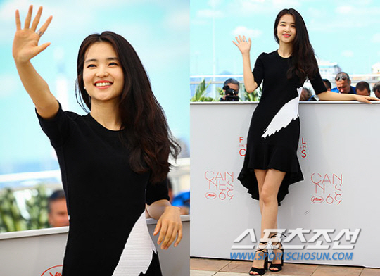 이날 오후 프랑스 칸 팔레 드 페스티발에서는 미드나잇 스크리닝에 초청된 영화 '부산행'의 포토콜이 열렸다. 배우 정유미, 공유, 연상호 감독이 포토콜에 참석한 가운데, 여배우 정유미의 화사한 미모와 드레스 자태가 단연 돋보였다. 정유미는 깊은 화이트 네크라인이 돋보이는 블랙 드레스 자태를 선보였다. 슈즈 역시 드레스와 같은 블랙-화이트 패턴을 선택했으며, 깔끔한 디자인의 이어링으로 밋밋해 보일 수 있는 블랙 컬러를 세련되게 연출했다. 전체적으로 단아하면서도 정유미 특유의 러블리한 매력이 드러났다.