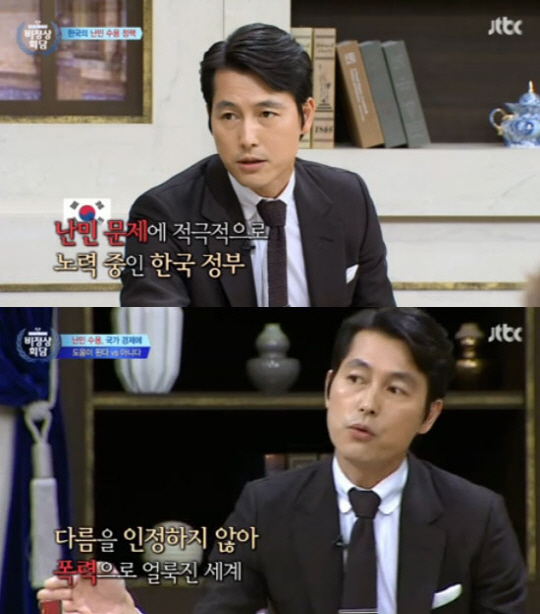 이어 "우리나라도 힘든 사람이 많은데 왜 난민을 도와야 하나요"라는 질문을 정우성은 "저도 처음에 당황한 질문이었다"라고 운을 뗐다. 그는 "주변에 도와야할 사람이 있는데, 그 안에 난민이 있다. 난민만 도와라, 난민이 최우선이다라고 말할 수 없다"라는 소신을 밝혔다.