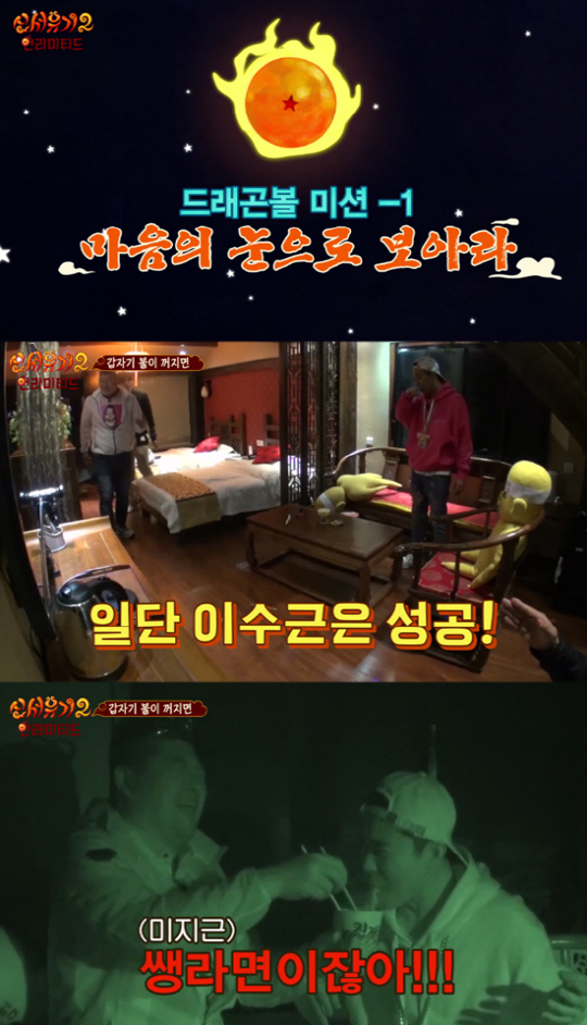 [스포츠조선닷컴 정안지 기자] '신서유기2' 멤버들이 암전 속 게임을 펼쳤다.