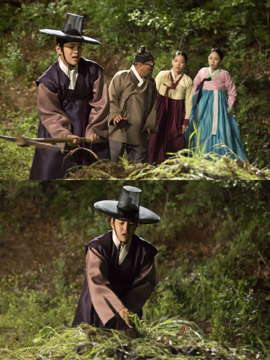 공개된 사진 속 대길은 남도깨비(임현식 분), 계설임(김가은 분), 연화(홍아름 분) 등 자신의 사람들과 아버지인 백만금의 무덤 앞을 찾은 모습이다. 대길의 손에는 커다란 곡괭이가 들려 있으며, 그런 대길을 바라보는 남도깨비, 계설임, 연화의 표정에는 놀라움과 당혹감이 가득하다.
