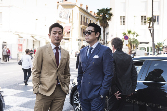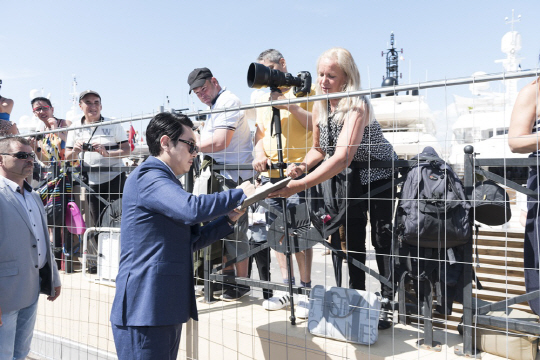 특히 박찬욱 감독과 하정우 사이에서 완벽한 비주얼로 존재감을 드러내는 김민희, 포토콜로 이동하기 전 차량 앞에서 남다른 아우라를 내뿜는 하정우와 조진웅, 분수대에서 상큼한 미소를 보여주는 김태리와 밀려드는 싸인 요청에 화답하는 박찬욱 감독 등 친근하면서도 스타일리시하다. 또한 칸의 푸른 해변을 배경으로 밝은 미소를 짓고 있는 '아가씨' 배우들의 모습은 기분 좋은 에너지를 선사한다.