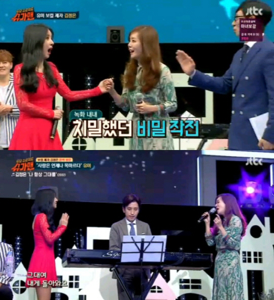 이어 김정은이 노래를 부르며 무대로 깜짝 등장해 놀라움을 자아냈다. 또한 김정은은 유미의 지도 하에 '나 항상 그대를'을 열창해 눈길을 끌었다.
