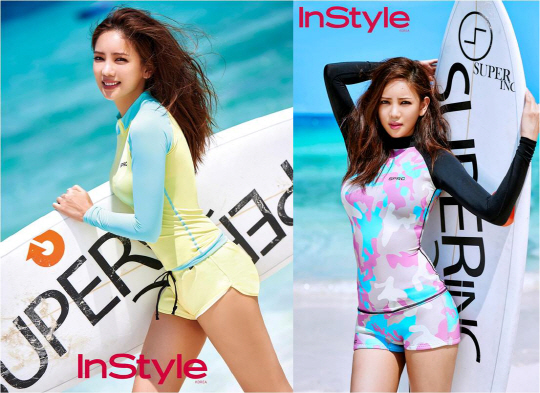 이번 화보에서 공개된 슈퍼링크의 래시가드는 여름 시즌에 어울리는 화사한 파스텔 컬러와 세련되면서도 심플한 디자인, 동양인 체격에 적합한 아시안 핏(Asian Fit) 으로 제작, 휴가지에서도 스타일 감각과 건강한 몸매를 뽐내고자 하는 여성들에게 큰 인기를 얻고 있다. 자외선 차단 기능은 물론 체형의 단점을 보완할 수 있는 보디라인 보정 효과까지 있는 고기능성 제품이다.