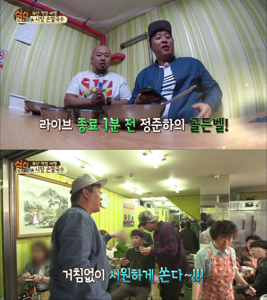 부산으로 원정 먹방을 떠나 시원하게 골든벨까지 울리고 돌아온 정준하와 돈스파이크의 모습은 오늘밤 9시 iHQ K STAR에서 확인할 수 있다. narusi@sportschosun.com