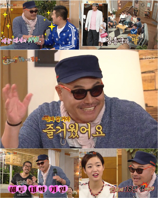 뿐만 아니라 김흥국은 녹화 도중 갑작스러운 퇴근을 감행해 웃음을 유발했다. 김흥국은 예능에 출연할 때마다 자유로운 출퇴근 스타일을 선보인바 있는 자유인. 이날 역시 김흥국은 해맑은 미소를 터뜨리며 "즐거웠어~"라는 외마디 인사를 남긴 채 조퇴를 감행했고, 홀연히 사라진 김흥국의 뒷모습은 폭소를 금치 못하게 만들었다.