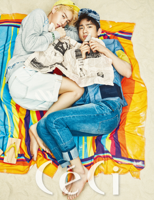 이번 촬영은 해변으로 떠난 여름 휴가를 컨셉으로, 모래 위 해변에서 여유를 즐기는 두 사람의 모습을 담았다. 마크와 주니어는 촬영 중간중간 서로의 모습을 모니터 해주기도 하며 촬영과 인터뷰에 최선을 다했다는 훈훈한 후문이다.