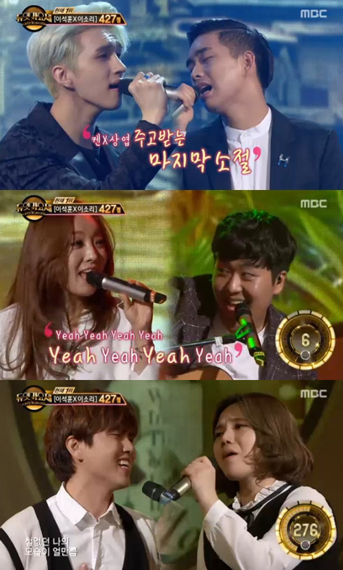 이어 세 번째로는 이석훈과 이소리가 장혜진의 '내게로'를 열창했다. 이석훈의 감미로운 목소리는 여심을 자극했고, 이소리의 가녀린 몸에서 뿜어져 나오는 폭발적인 가창력은 청중평가단을 사로잡았다. 두 사람은 '끝판왕'으로 불린 손승연 팀을 제치고 427점을 획득했다.