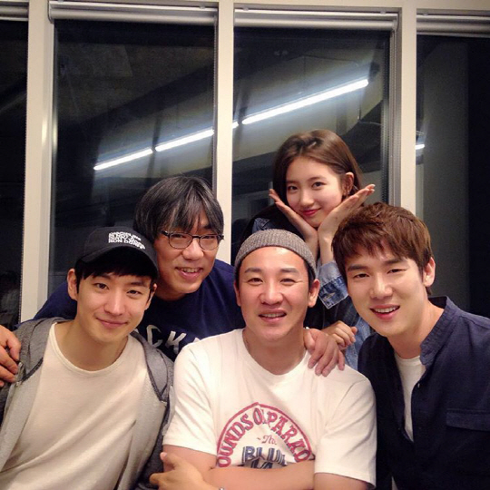 사진 속에는 꽃받침 포즈로 모임의 '진짜 꽃'이 된 수지와 이제훈 엄태웅 유연석 이용주 감독이 화사한 미소가 담겨있다. 2012년 개봉한 '건축학개론'의 인연이 4년이 지난 지금까지도 이어지고 있는 것. 관계자들에 의하면 '건축학개론' 모임은 꾸준히 이어져왔다고.