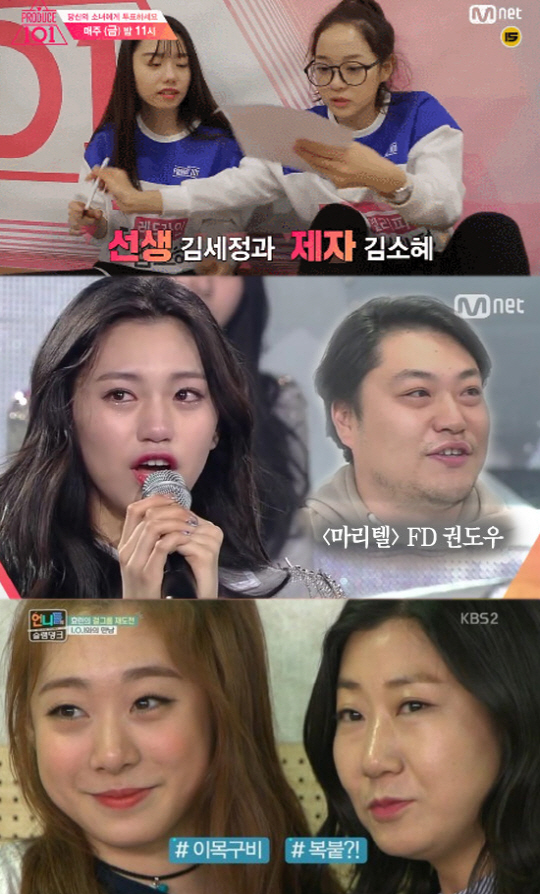 미모 뿐 아니라 '프로듀스101' 방송 내내 각종 투표 및 평가에서 1위를 차지하며 '갓세정', '퀸세정'이라고도 불렸다. 팀간 배틀 '아이러니'에서 김소혜에게가르쳐주는 모습이 포착되며 '세정센세('선생님'을 뜻하는 일본어)'로도 불렸다.