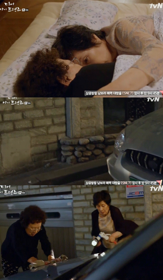 [스포츠조선닷컴 정안지 기자] '디어 마이 프렌즈' 나문희과 김혜자가 차에 묻는 피를 보고 화들짝 놀랐다.