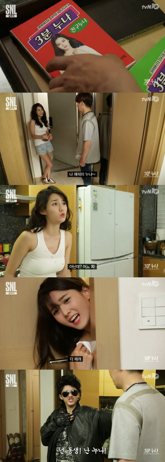 남보라는 21일 밤 방송된 tvN 'SNL 코리아7'의 코너 '3분 누나'에서 정상훈과 호흡을 맞췄다.